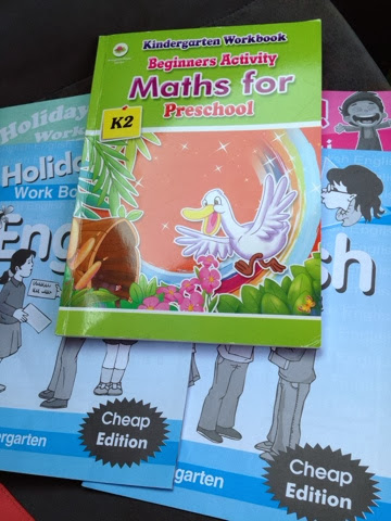 Cuti sek x lama jek lagik kan...semalam aku p jj..tgk2 ada jual buku latihan utk cuti sekolah nanti..setakat ni kami xdak plan nak p mana2 yg jauh..cuma dgr kata atuk n opah jek nak bawak budak2 ni p berjalan....pg la..pg la....